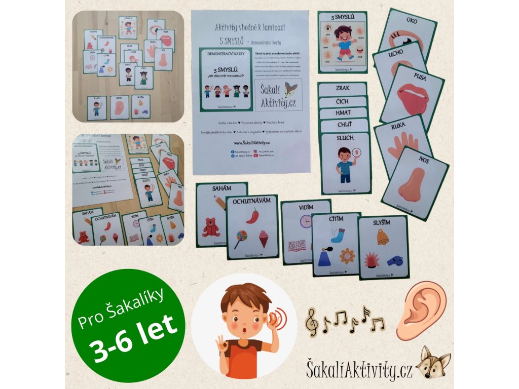 Soubor obsahuje 16 + 1 karet, které představují 5 smyslů, 5 smyslových orgánů a 5 předmětů, jež jsou se smysly propojeny. Každá karta obsahuje jasný obrázek a název, což umožňuje snadné pochopení i samostatnou práci dítěte.