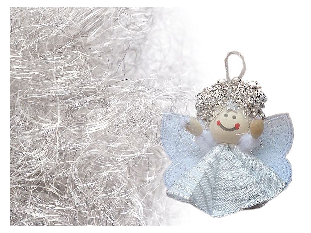 Použití: Andělské vlasy využijete ke zdobení květinových vazeb, figurek či panenek. O Vánocích zajímavě vyniknou na stromku a adventním věnci.