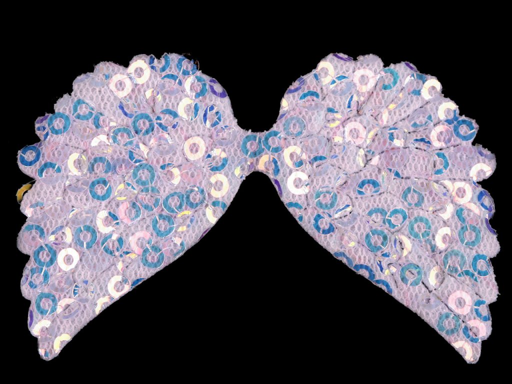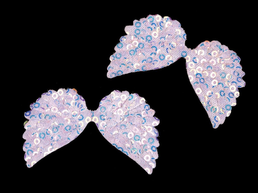 Textilní aplikace křídel má přední stranu ozdobenou flitry s AB efektem. Můžete ji přišít i přilepit.
