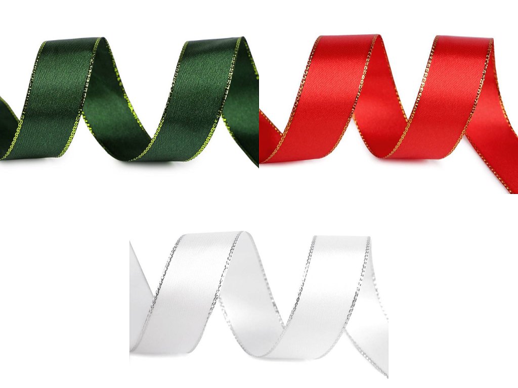 Atlasová stuha je velmi kvalitní a pevná. Po obou okrajích ji lemuje třpytivý lurex.