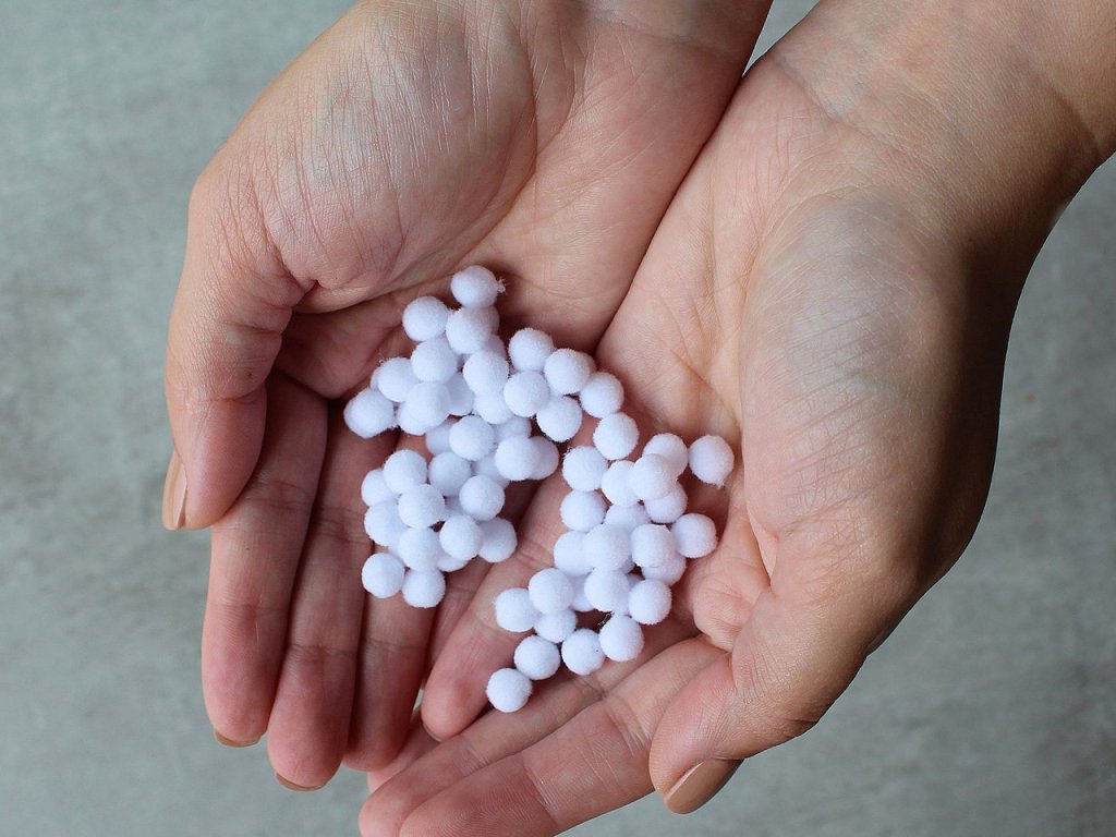 Budou krásné jako oči, ouška, čumáček, tlapky i ocásek. Dají se nalepit i našít. Hodí se i jako imitace sněhu u vánočních dekorací.