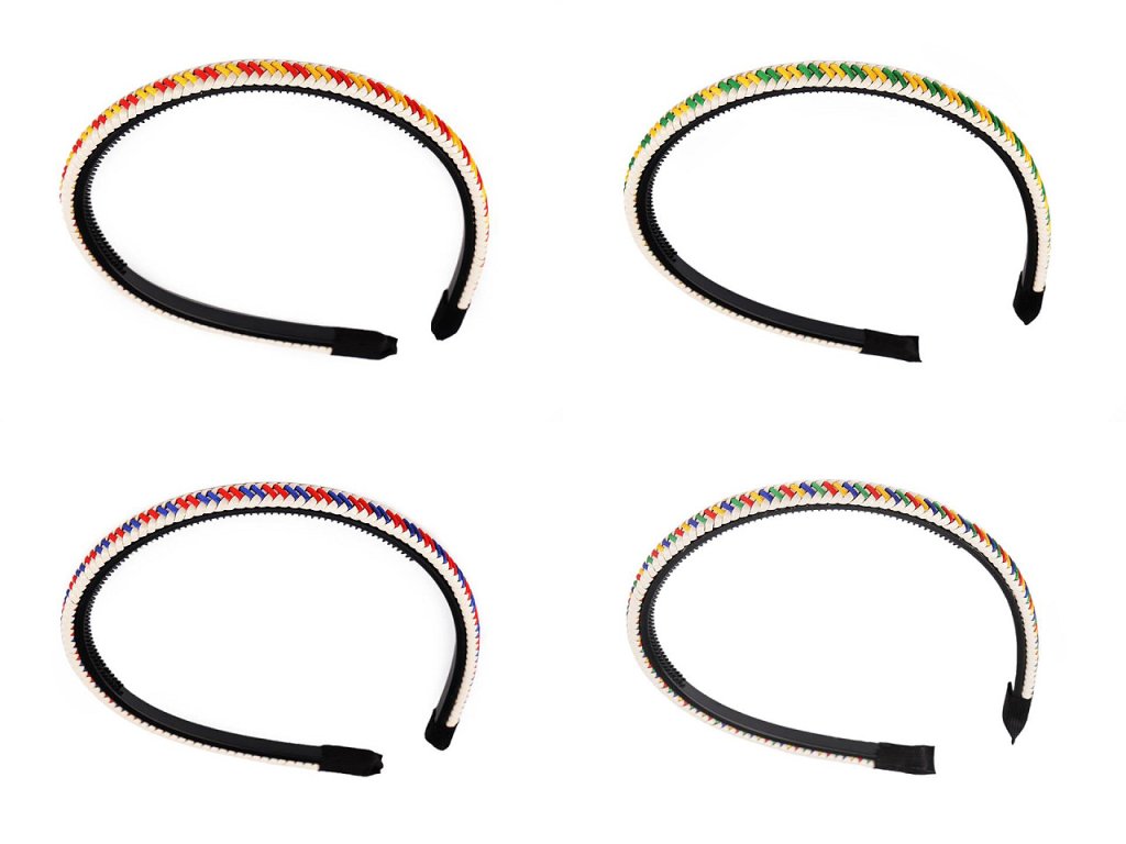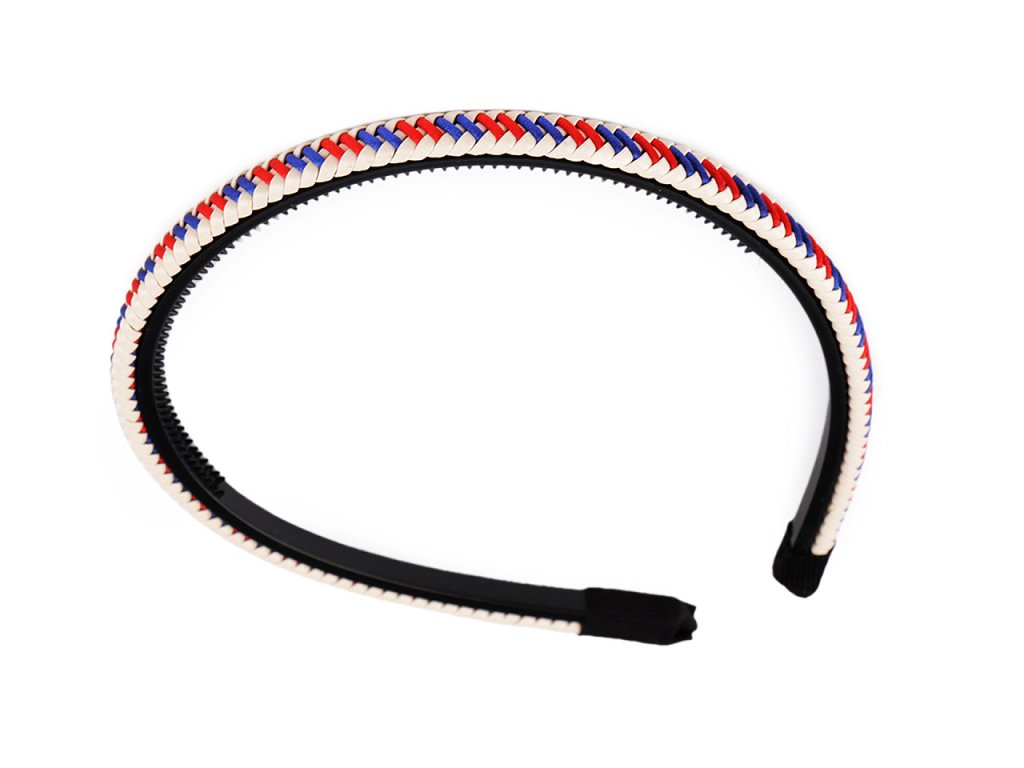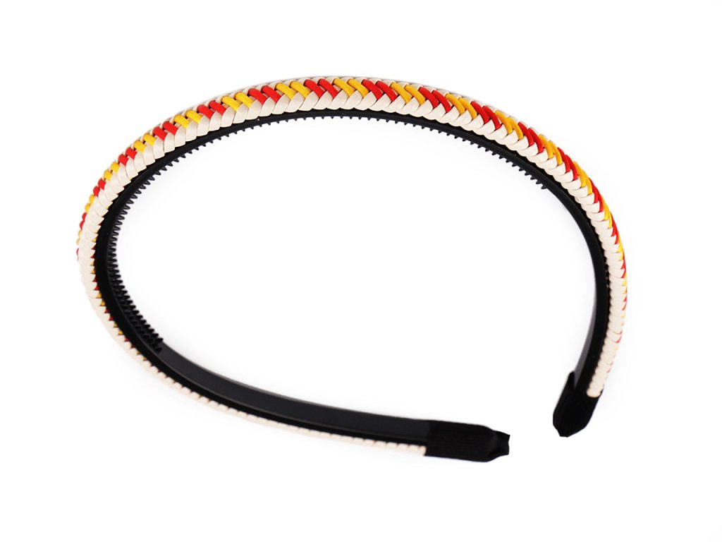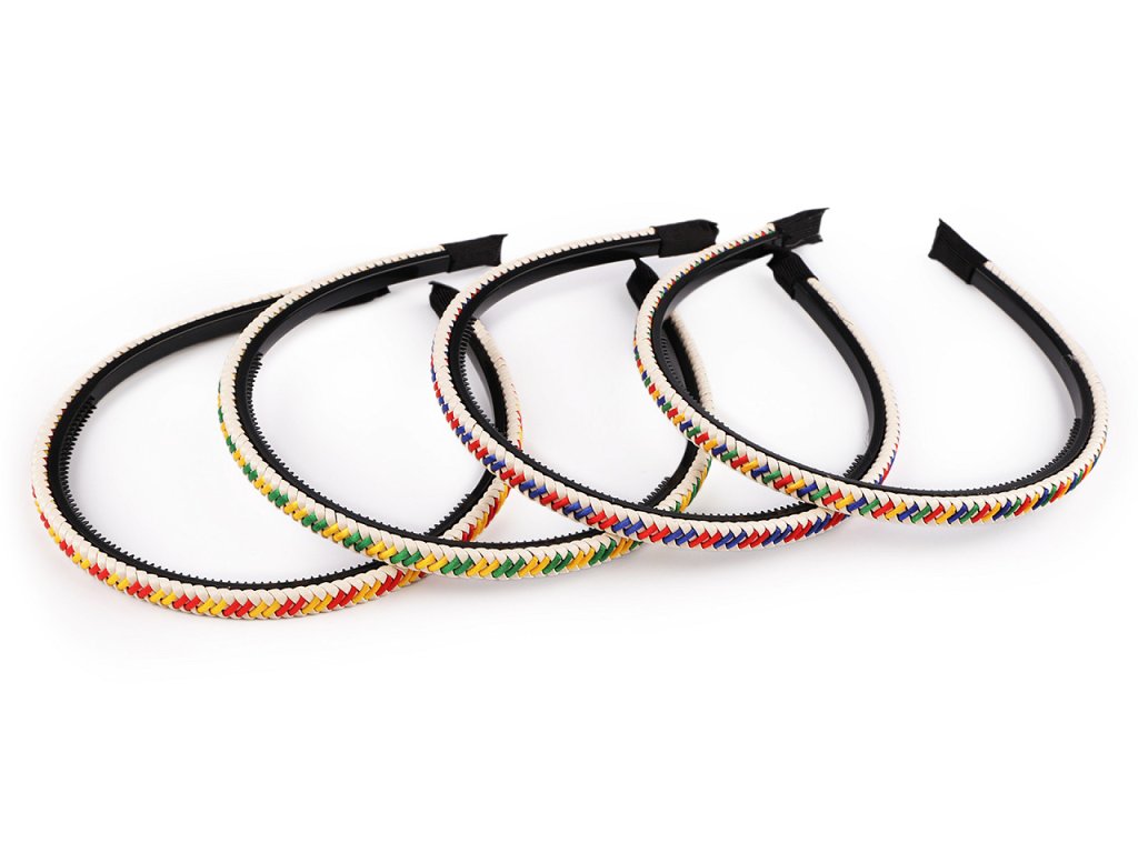 Čelenka do vlasů je ozdobená rafinovaně proplétaným copánkem, který má zajímavou strukturu a barevný vzor.