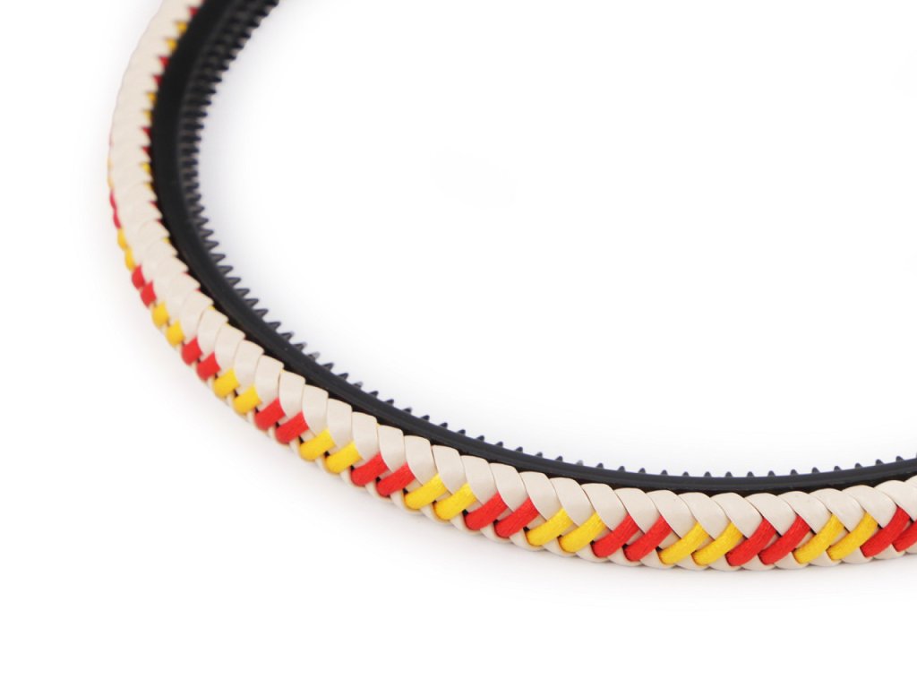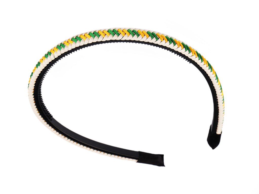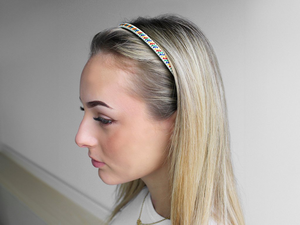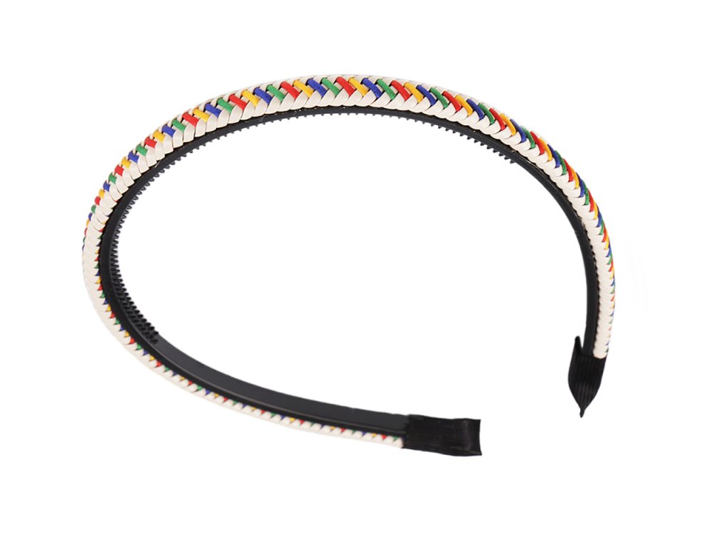 Čelenka do vlasů je ozdobená rafinovaně proplétaným copánkem, který má zajímavou strukturu a barevný vzor.