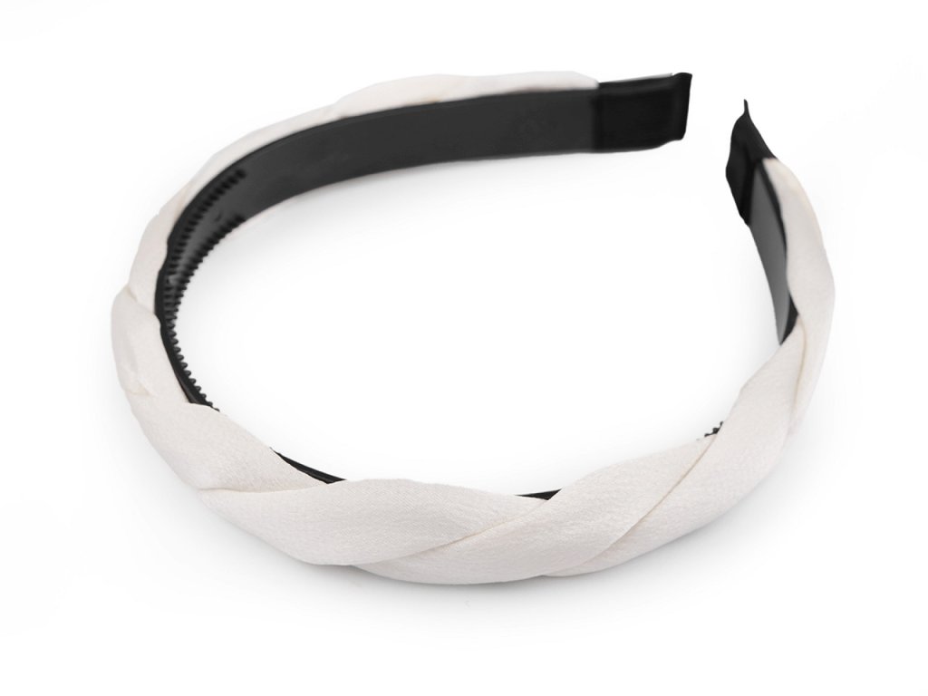 Čelenka do vlasů saténová splétaná je ozdobená spleteným textilním copánkem, který jí dělá zajímavou strukturu.