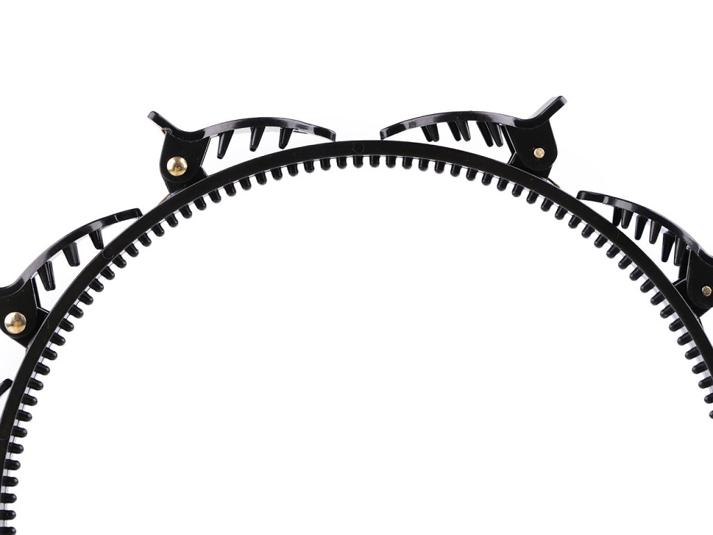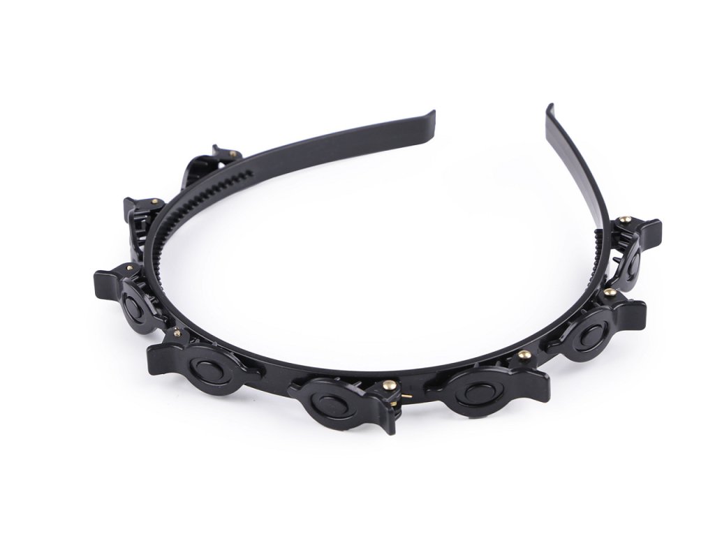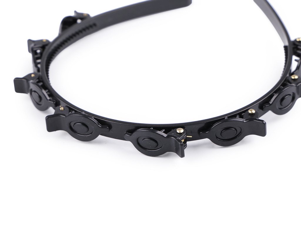 Skřipce na čelence jsou po celé délce, umožní vám vytvářet zajímavé účesy. Nasaďte čelenku na hlavu a poté do skřipců secvakněte menší prameny vlasů.