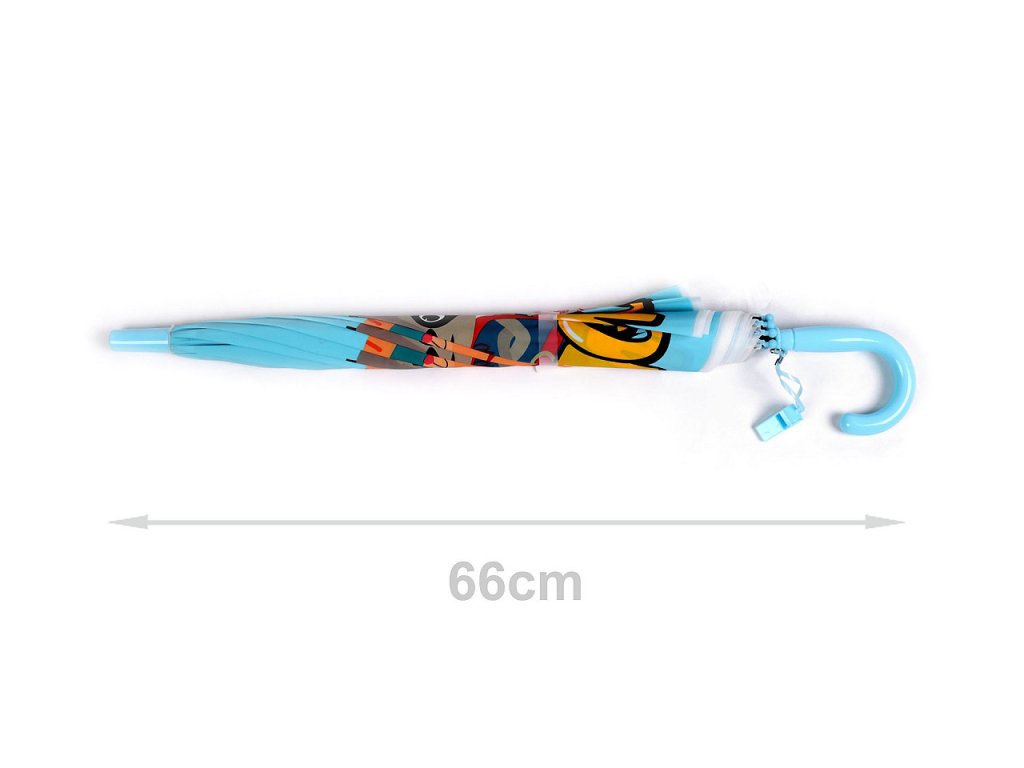 Rukojeť je vhodná pro dětskou ruku. Konstrukce deštníku je z pružných lamel a tvoří osm polí. Dráty jsou zakončené plastovými koncovkami - zmenšují riziko poranění.