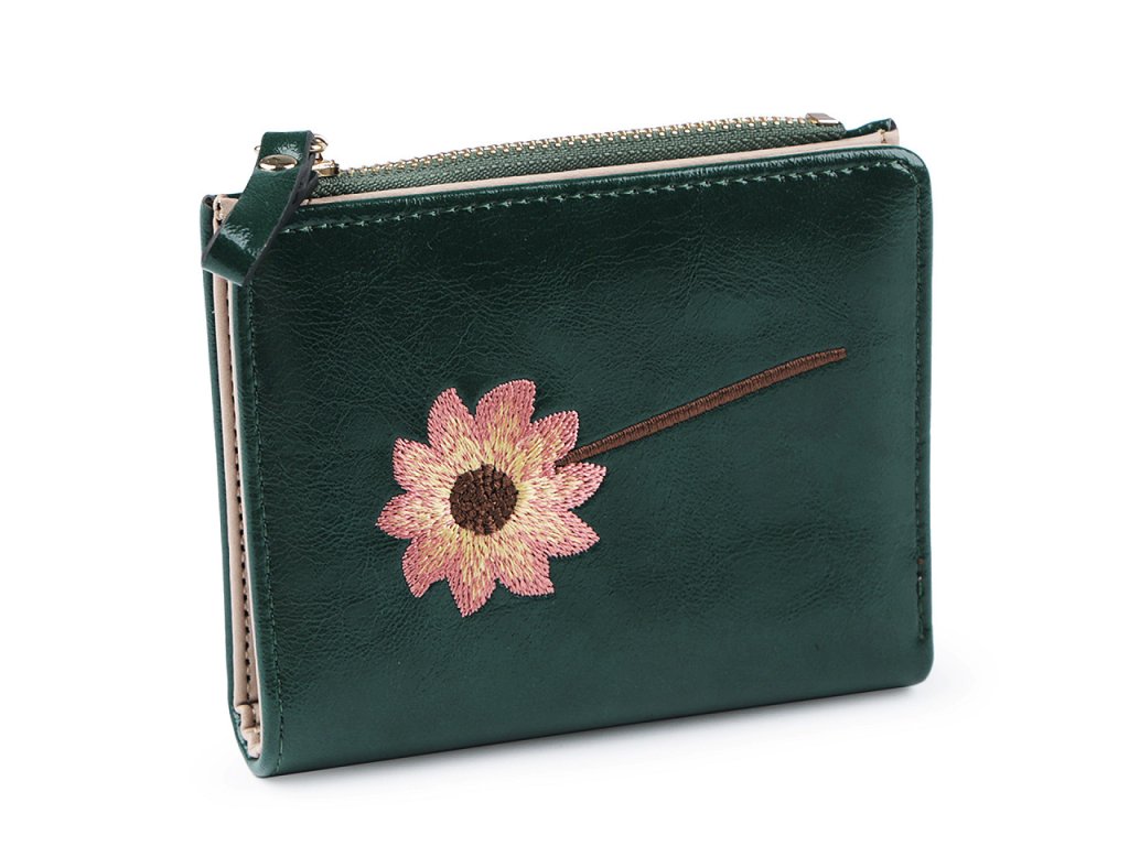Šikovná malá peněženka se vejde do každé kabelky. Je ozdobená vyšitým květem.