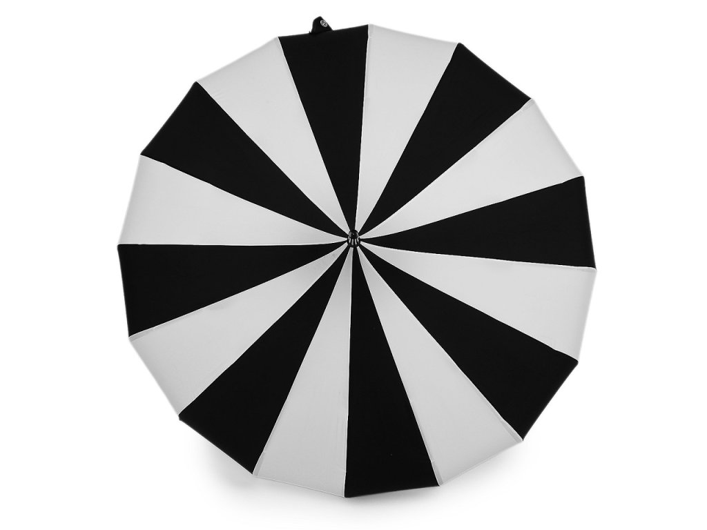 Konstrukce z kovového drátu a pružných lamel, tvoří 16 polí. Díky pružným lamelám je deštník velice pevný, neohne se ani za největšího nečasu.