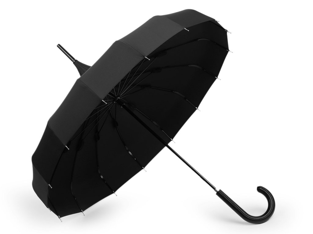Klasickou tyč má zakončenou pevnou rukojetí. Hloubka deštníku je 23 cm.