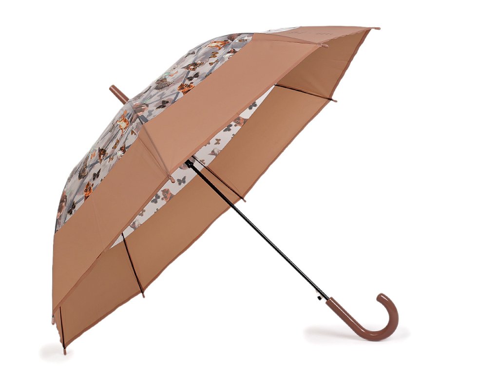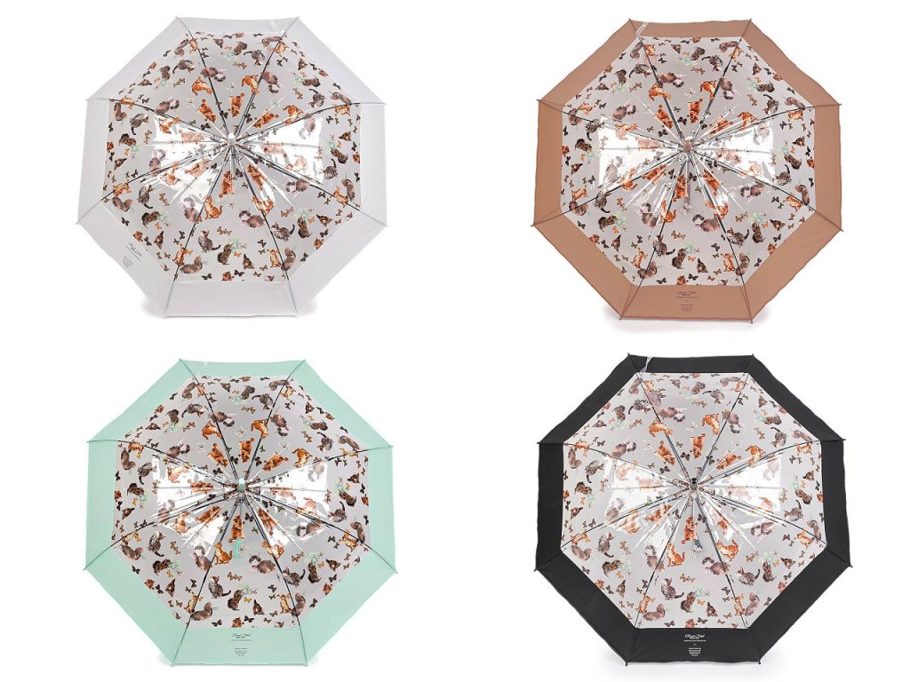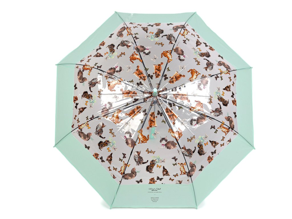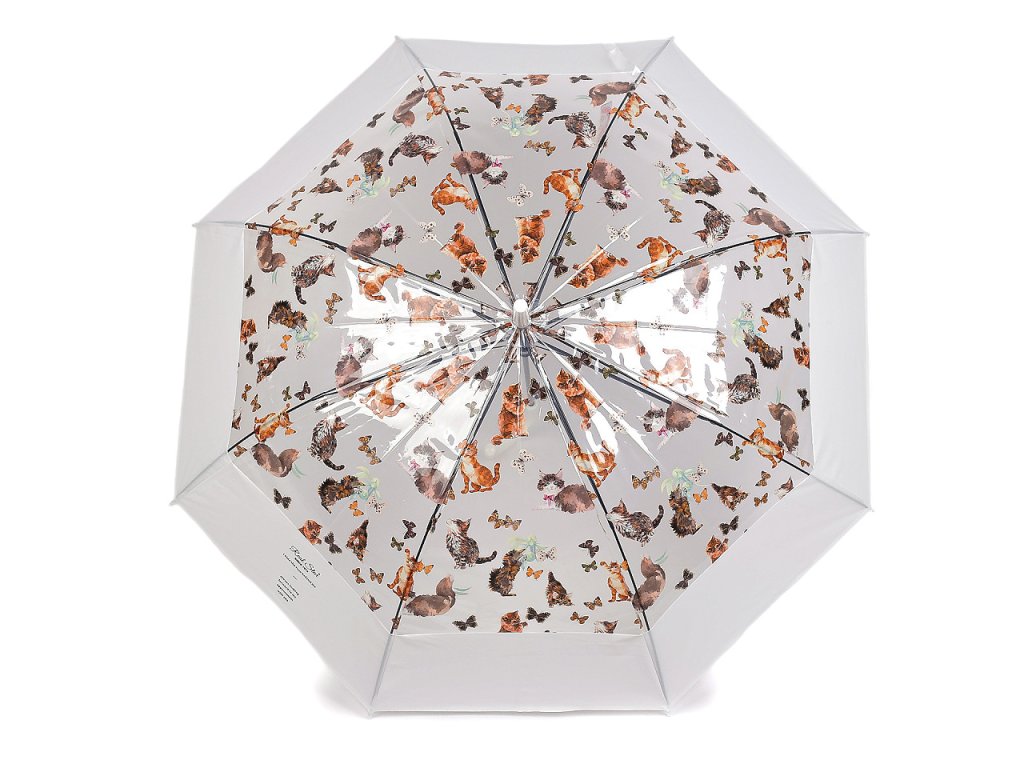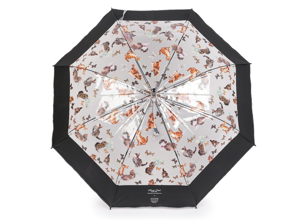 Průhledný deštník s barevným potiskem koček s motýly je ideální volbou pro všechny milovnice hravých módních doplňků.