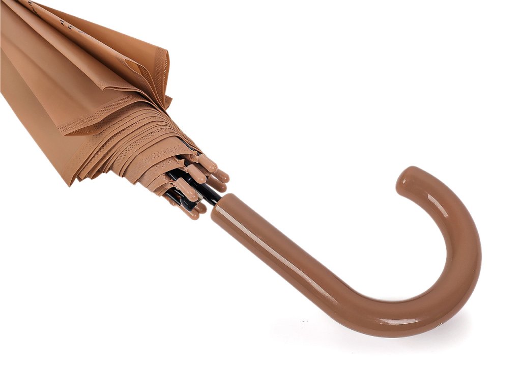 Díky nim je velice pevný, neohne se ani za největšího nečasu. Klasická tyč je zakončená pevnou rukojetí. Hloubka deštníku je 25 cm.
