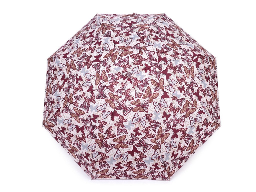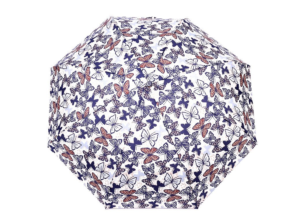 Dámský skládací deštník s potiskem motýlů nebo květů. Deštník je velice skladný - složený měří pouze 18-19 cm, pohodlně se vejde do kabelky.