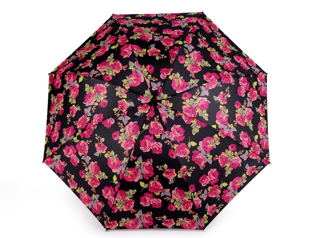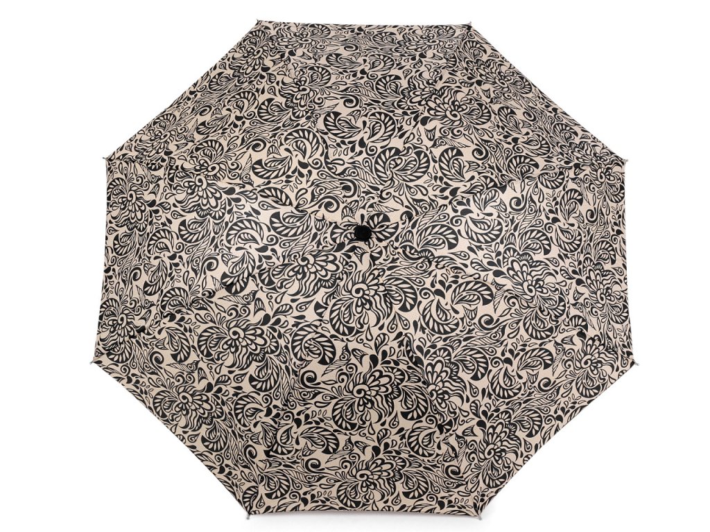 Dámský skládací deštník zaujme svým potahem. Je skladný, pohodlně se vejde do kabelky. Obstojí i v silném větru, pružné lamely zajišťují jeho vysokou pevnost a stabilitu.