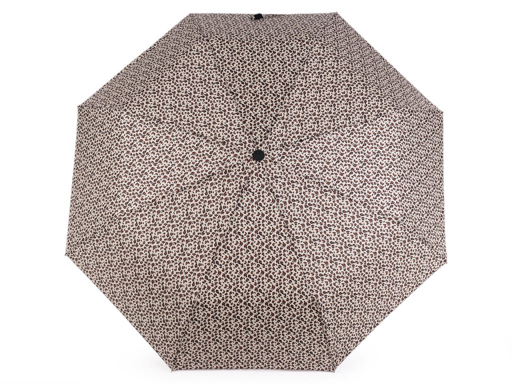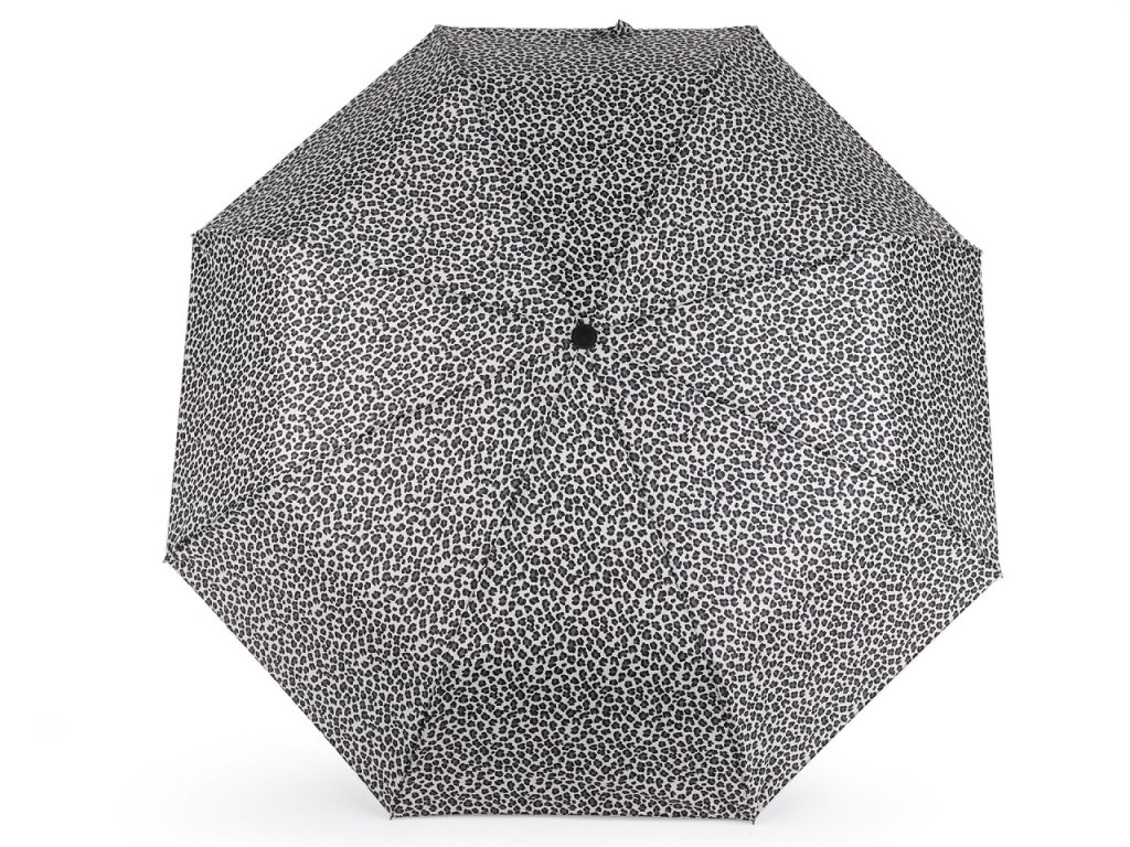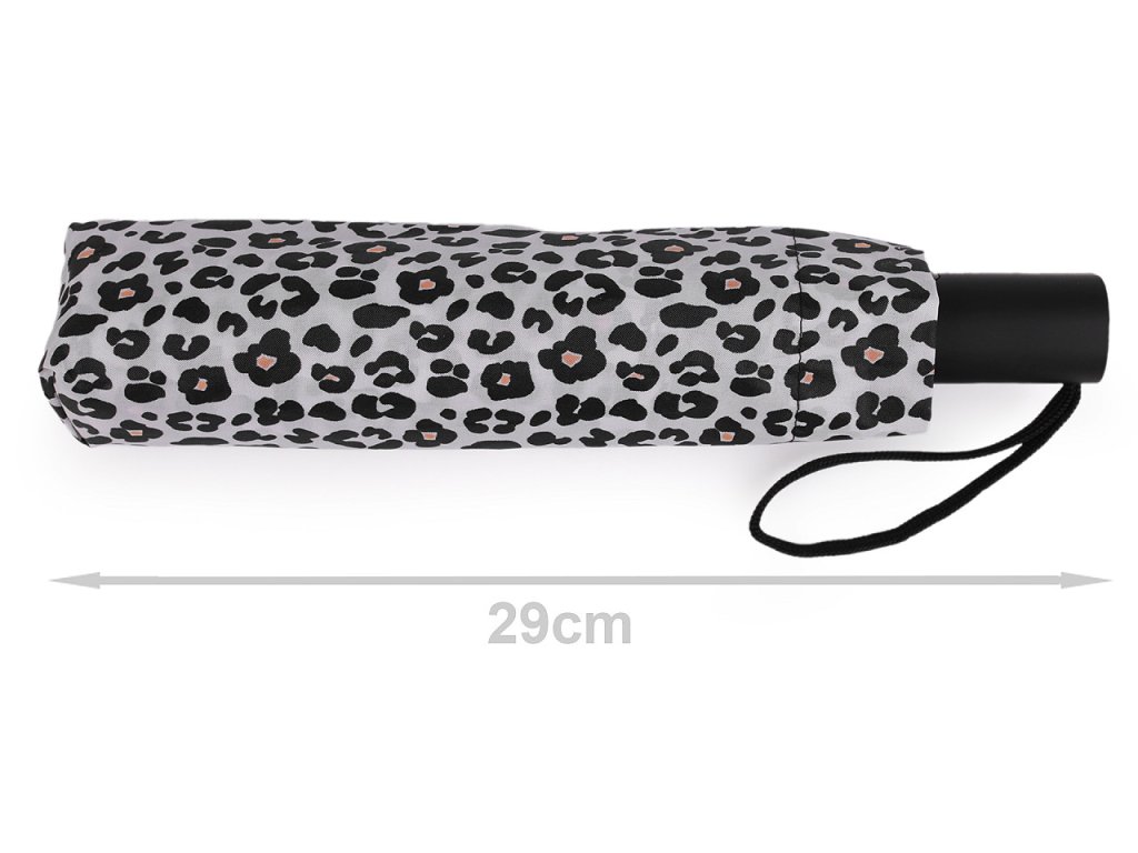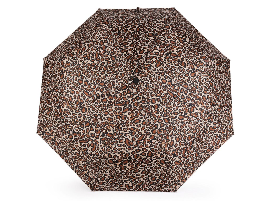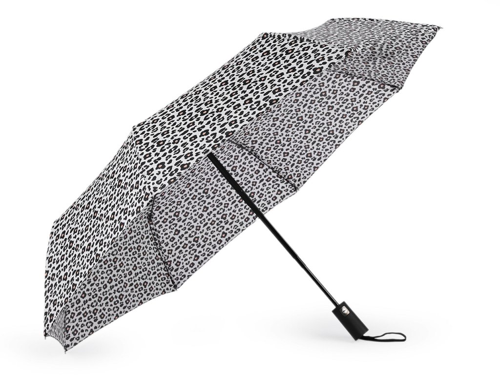 Plně automatický skládací deštník je vyrobený z kvalitního materiálu. Na potahu deštníku je leopardí motiv. Deštník má vystřelovací/sestřelovací mechanizmus.