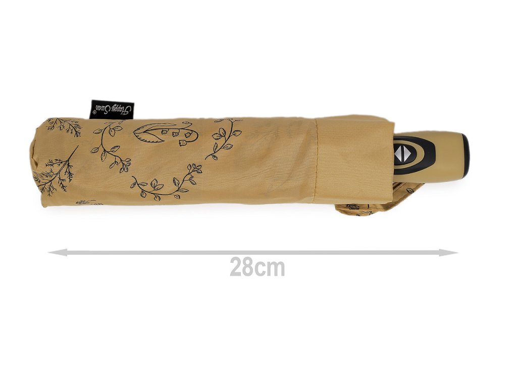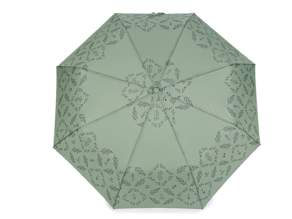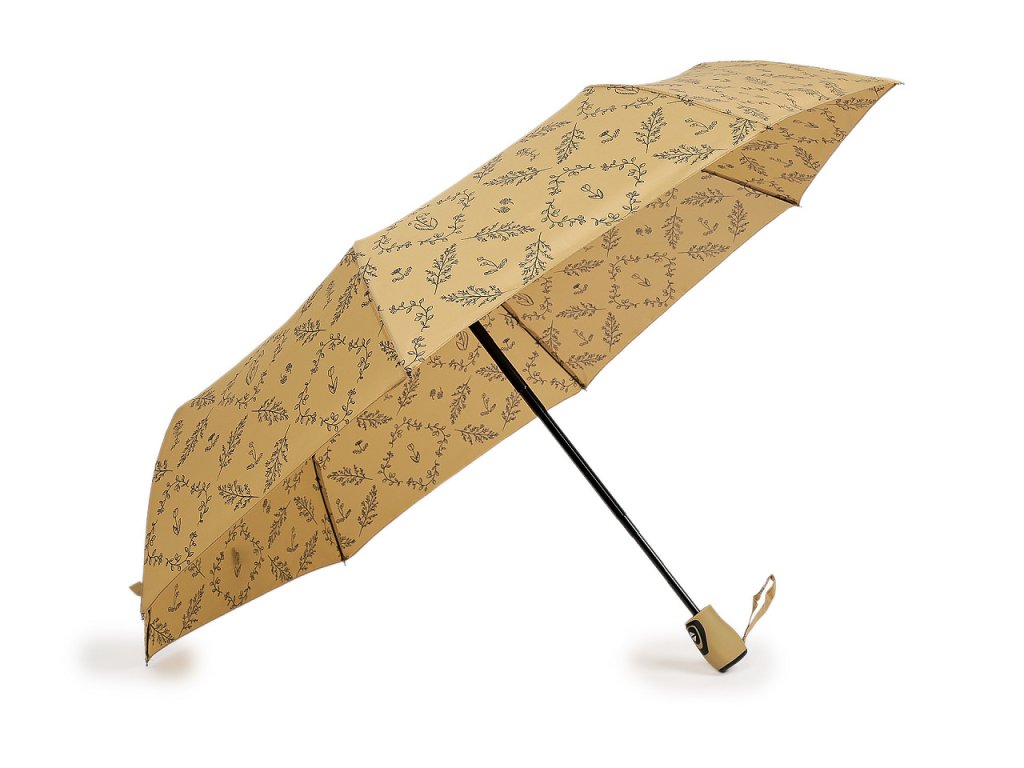 Plně automatický skládací deštník je vyrobený z kvalitního materiálu. Potah deštníku má potisk různých větviček a květů, má uv filtr.