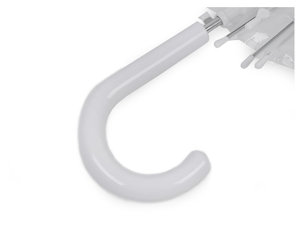 Dámský průhledný deštník je vyrobený z pevného materiálu. Je hluboký, jeho průhledný design umožňuje lepší výhled, bez omezující clony deštníku.