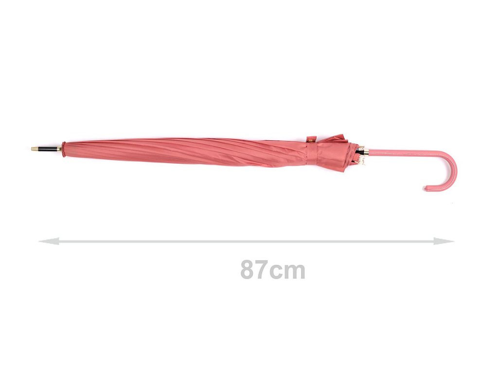 Deštník má klasickou tyč zakončenou pevnou rukojetí. Hloubka deštníku je 25 cm.