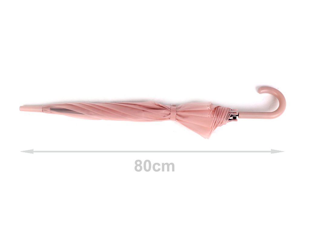 Díky nim je velice pevný, neohne se ani za největšího nečasu. Klasická tyč je zakončená pevnou rukojetí. Hloubka deštníku je 24 cm.