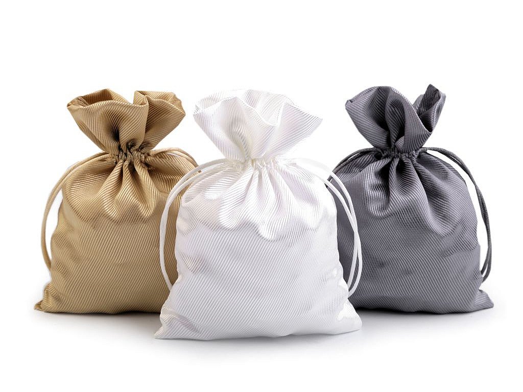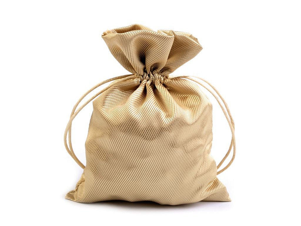 Elegantní dárkový pytlík se jemně leskne. Můžete do něj zabalit menší dárky, například náramek nebo hodinky.