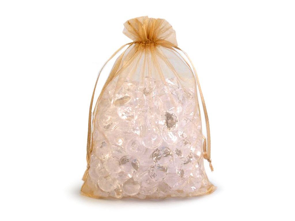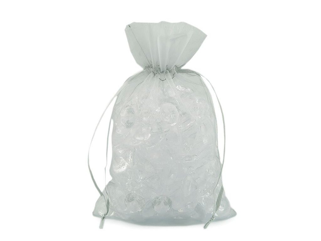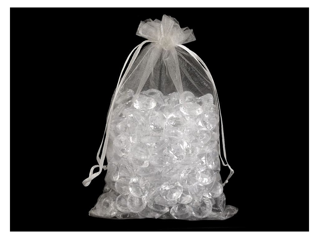 Dárkový pytlík je vyrobený z organzy, jeho povrch se jemně leskne. Snadno se uzavírá pomocí dvou stahovacích saténových šňůrek.