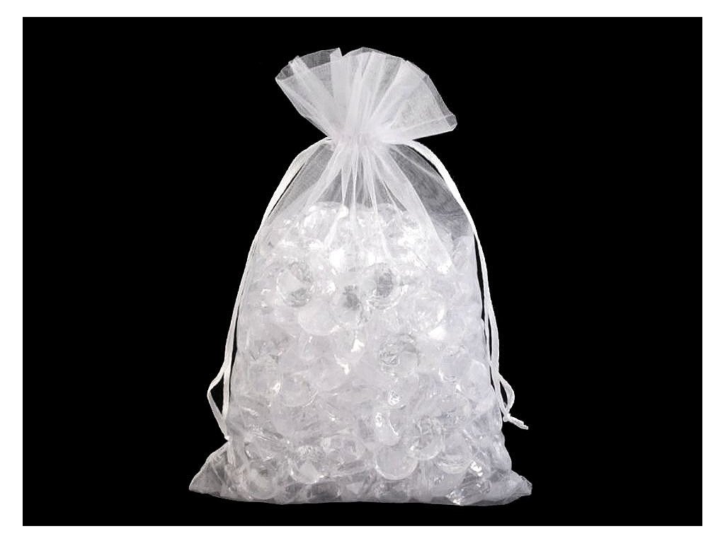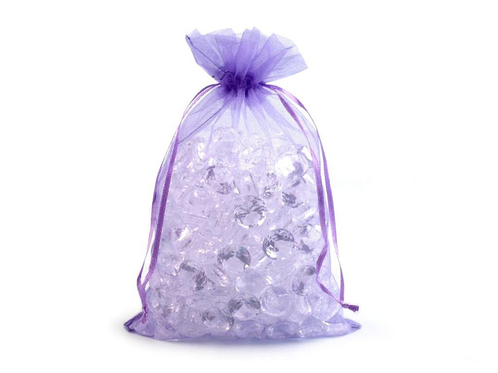 Monofilová textilie mírně prosvítá, takže dárek je ještě tajemnější. Pytlíček č. 2 má velikost 15 x 20 cm.