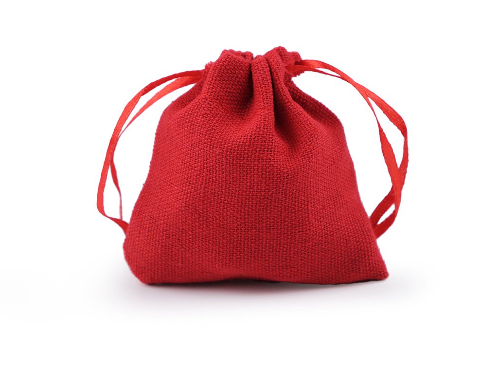 Je bavlněný s příměsí polyesteru. Použití: Pytlík využijete k zabalení drobných dárků a uskladnění vonných květů.