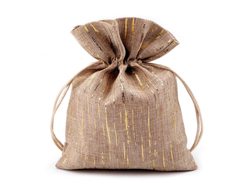 Dárkový pytlík se zlatým efektem 13x18 cm imitace juty