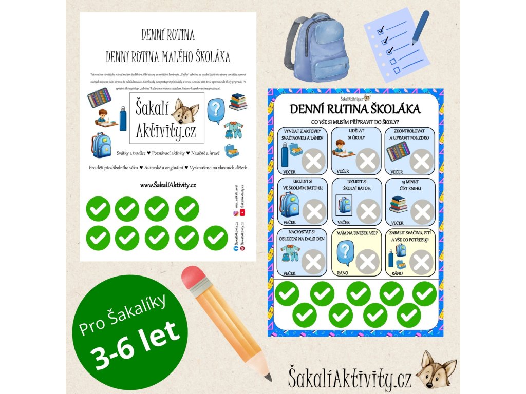Znáte to také: "Máš všechno do školy??" "..a máš zkontrolované pouzdro a ostrouhané pastelky??" Připomináme to Šakalíkům každý den, snažíme se, aby si návyky zautomatizovali a zároveň potřebujeme ohlídat, že je vše splnéno a v pořádku.