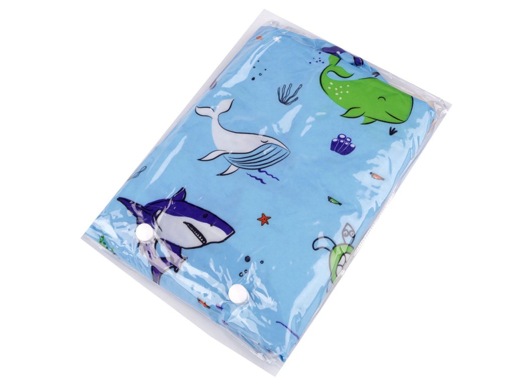 Pláštěnka je zabalená v ochranném pouzdru. Obrázky jsou na celé ploše pláštěnky.