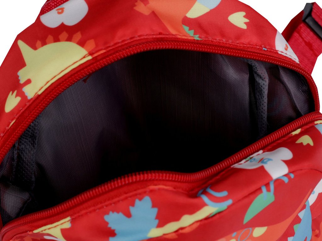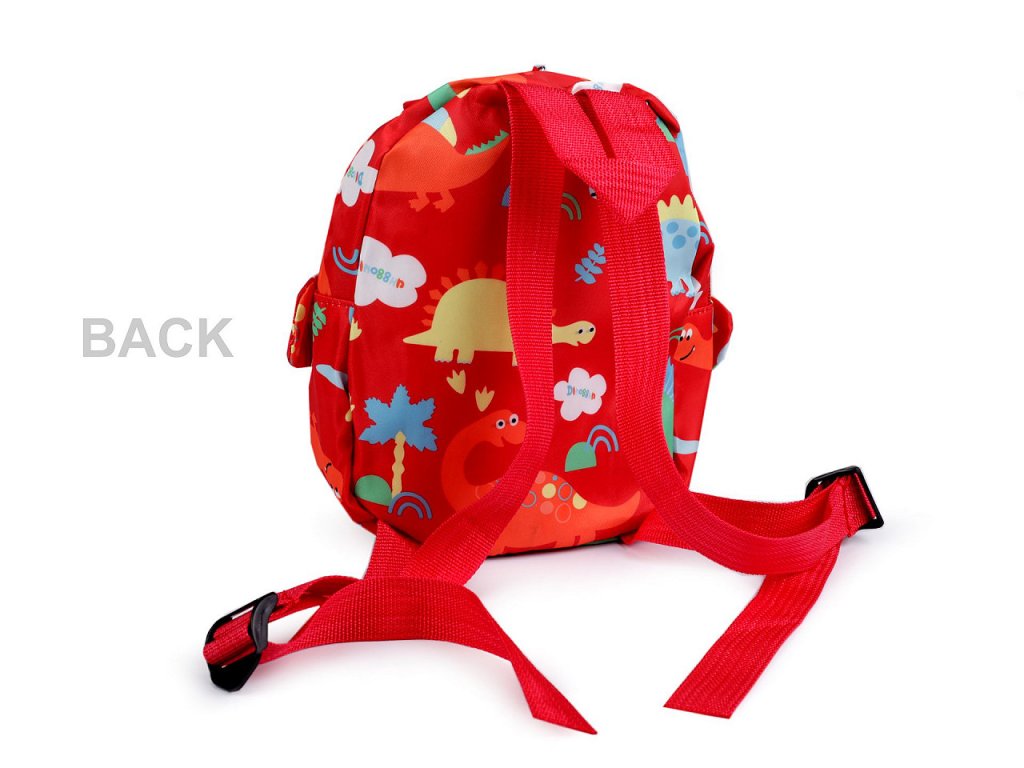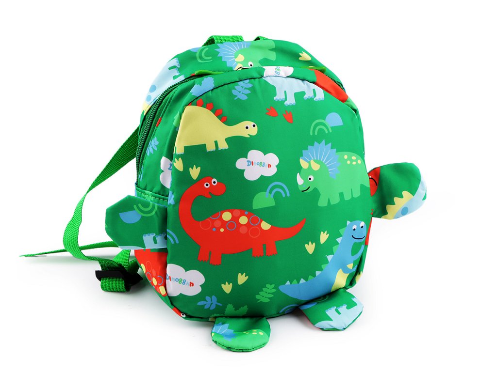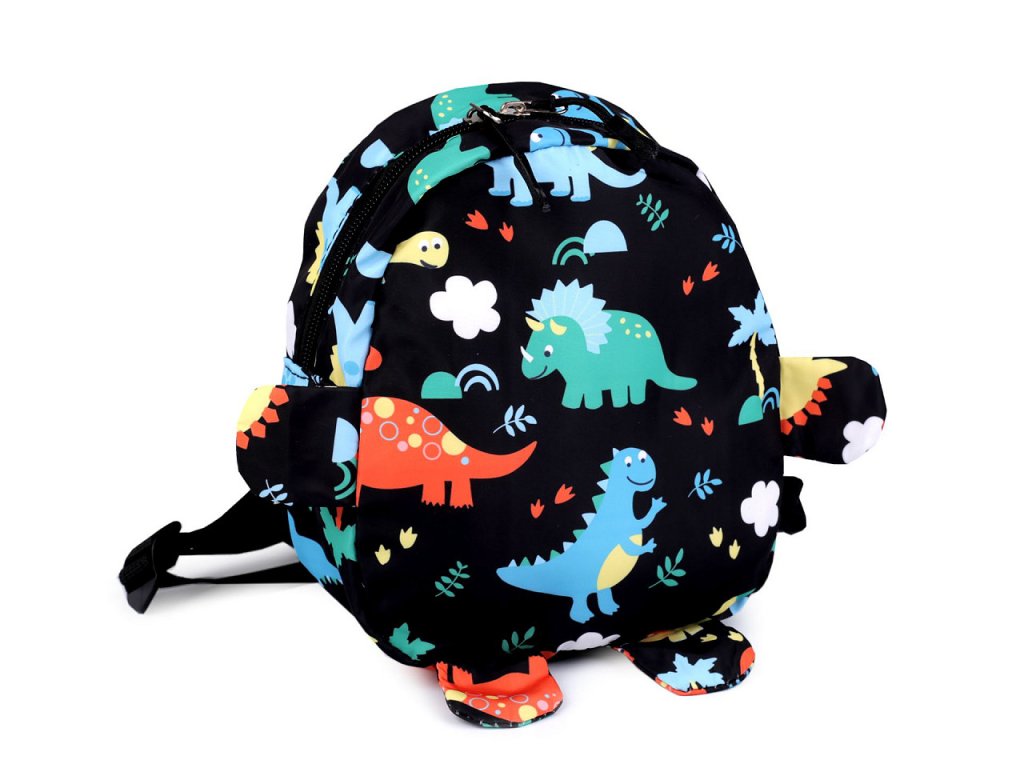 Malý textilní batůžek s motivem dinosaurů si děti zamilují na první pohled. Určitě je zaujmou i přečnívající tlapky na přední straně.