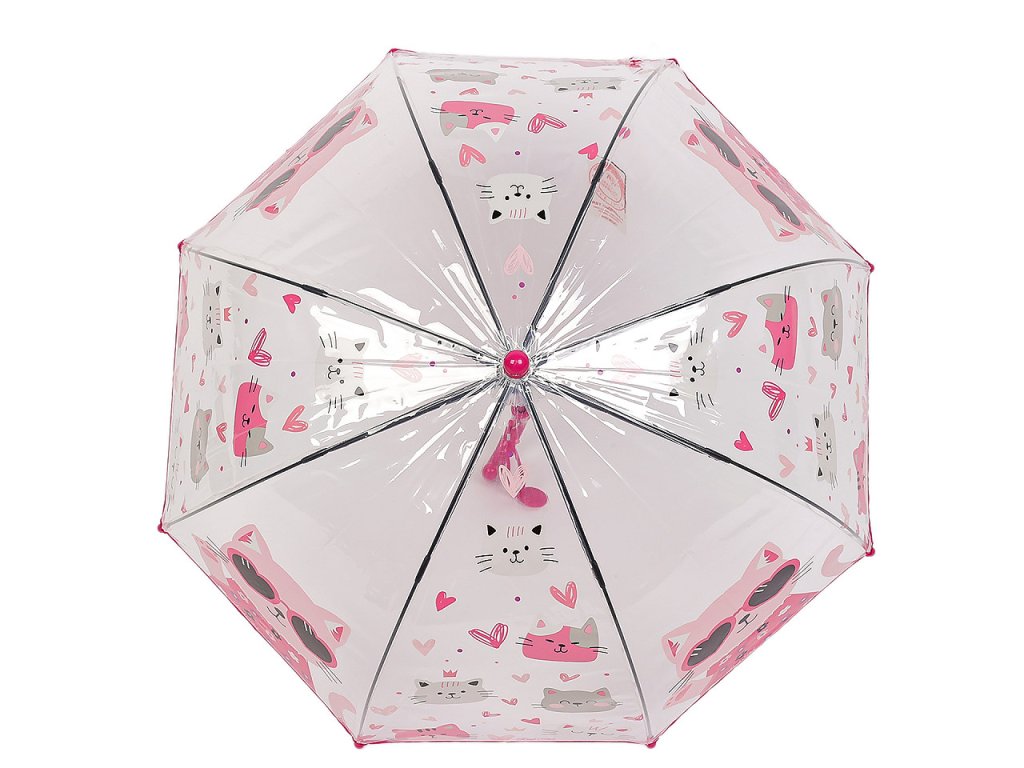 Dětský vystřelovací deštník s motivem koček je ideálním společníkem pro malé dobrodruhy během deštivých dnů. Průhledný materiál nejen že zajišťuje skvělou viditelnost, ale také dodává veselý a hravý vzhled, který si vaše dítě okamžitě oblíbí.