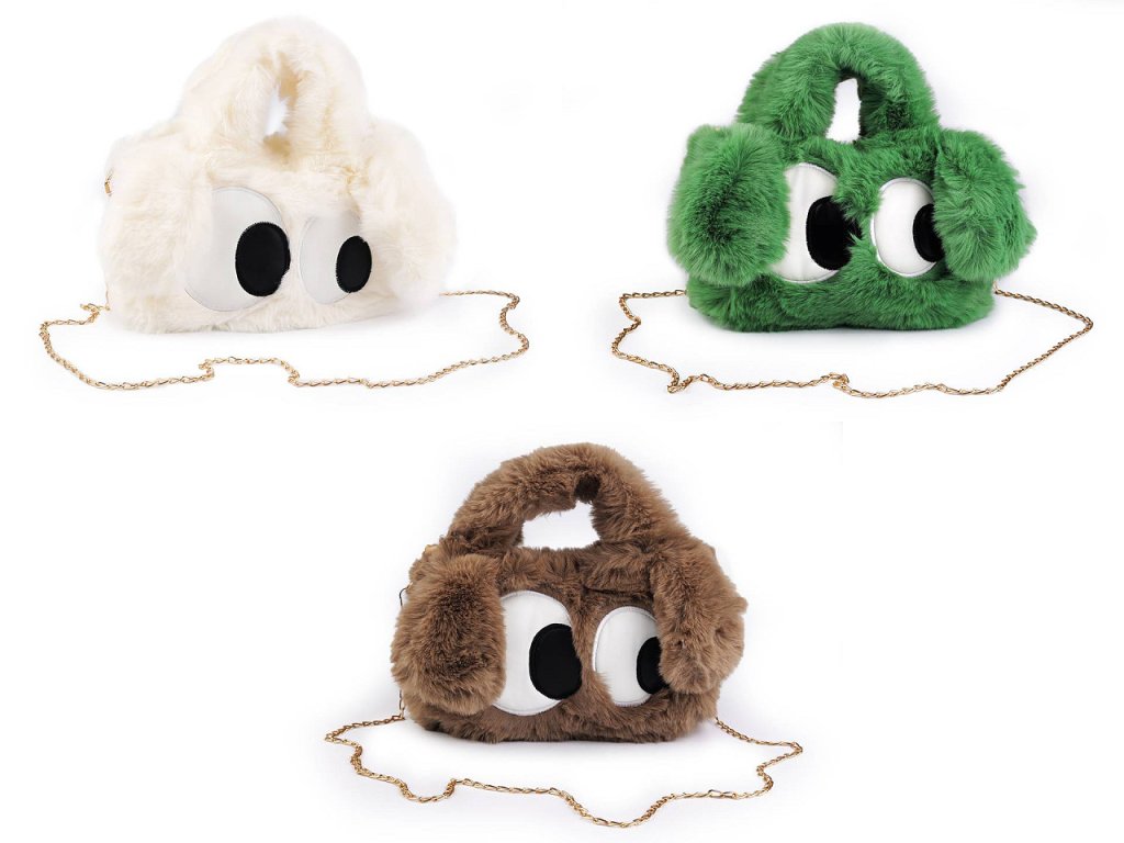 Díky jemnému kožíšku je velice příjemná na dotek. Na přední straně má oči z eko kůže. Zapíná se na magnet, uvnitř je podšívka z eko kůže.
