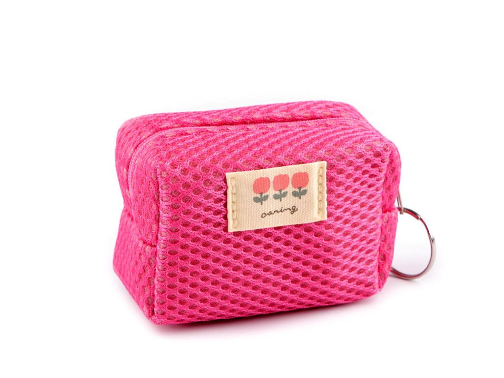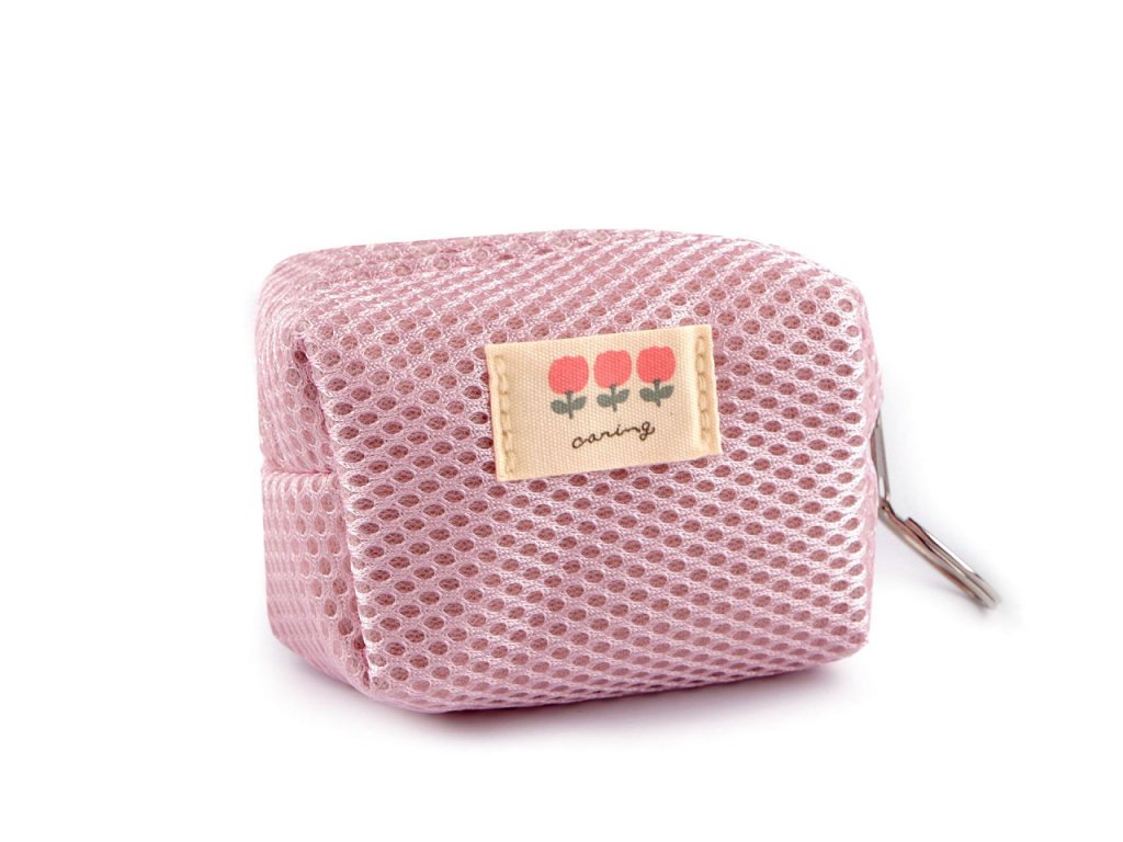 Dívčí pouzdro se síťovaným povrchem je na přední straně ozdobené textilním štítkem s květy. Je perfektní pro uložení drobné kosmetiky, malých pokladů, klíčů či drobných předmětů, které potřebujete mít stále po ruce.