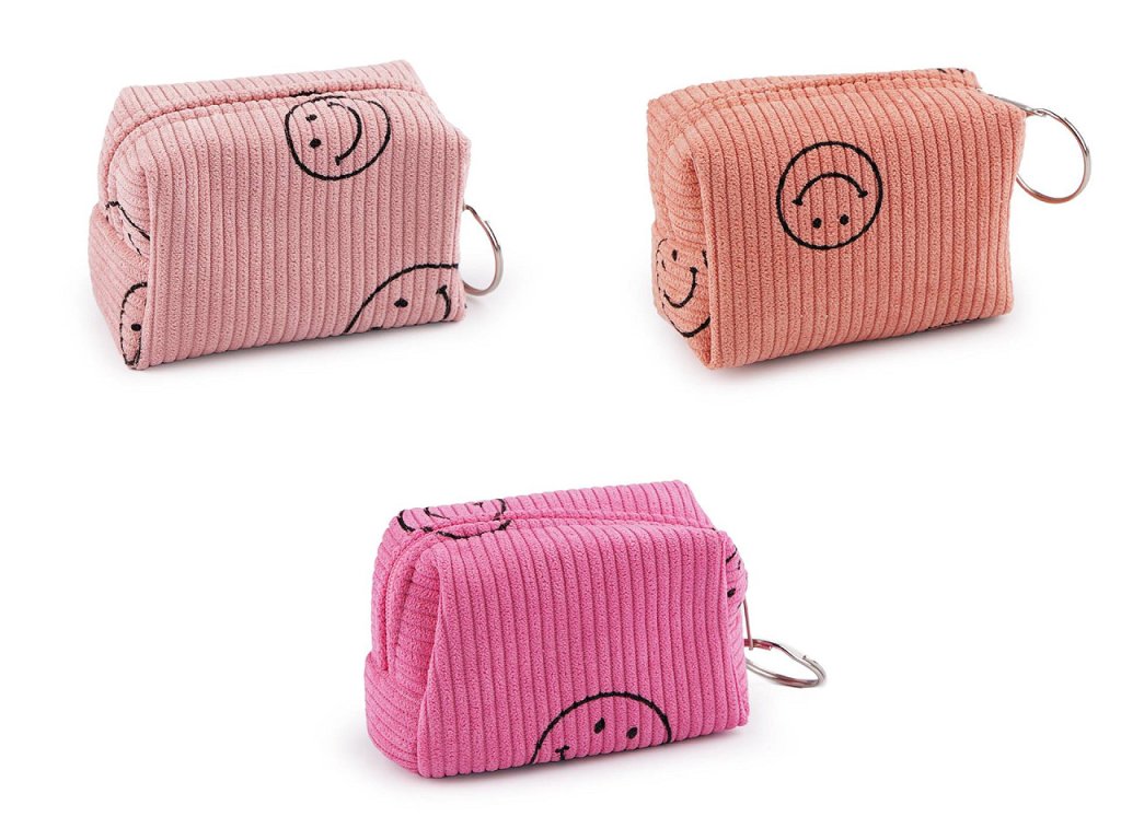 Dívčí manšestrové pouzdro je ozdobené motivem smajlíků. Jeho kompaktní velikost je perfektní pro uložení drobné kosmetiky, malých pokladů, klíčů či drobných předmětů, které potřebujete mít stále po ruce. Díky hravému vzoru se stane oblíbeným společníkem nejen na cestách, ale i při každodenních dobrodružstvích.