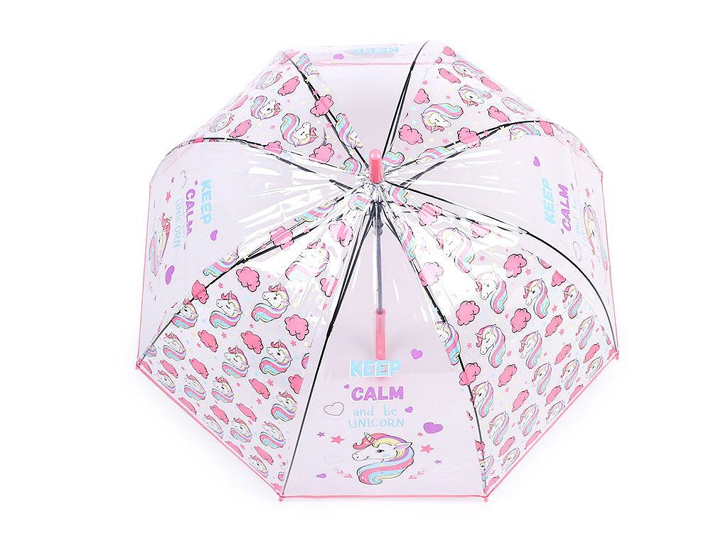 Dívčí deštník s potiskem roztomilých jednorožců má už větší velikost, hodí se pro dívky od cca 8 let.
