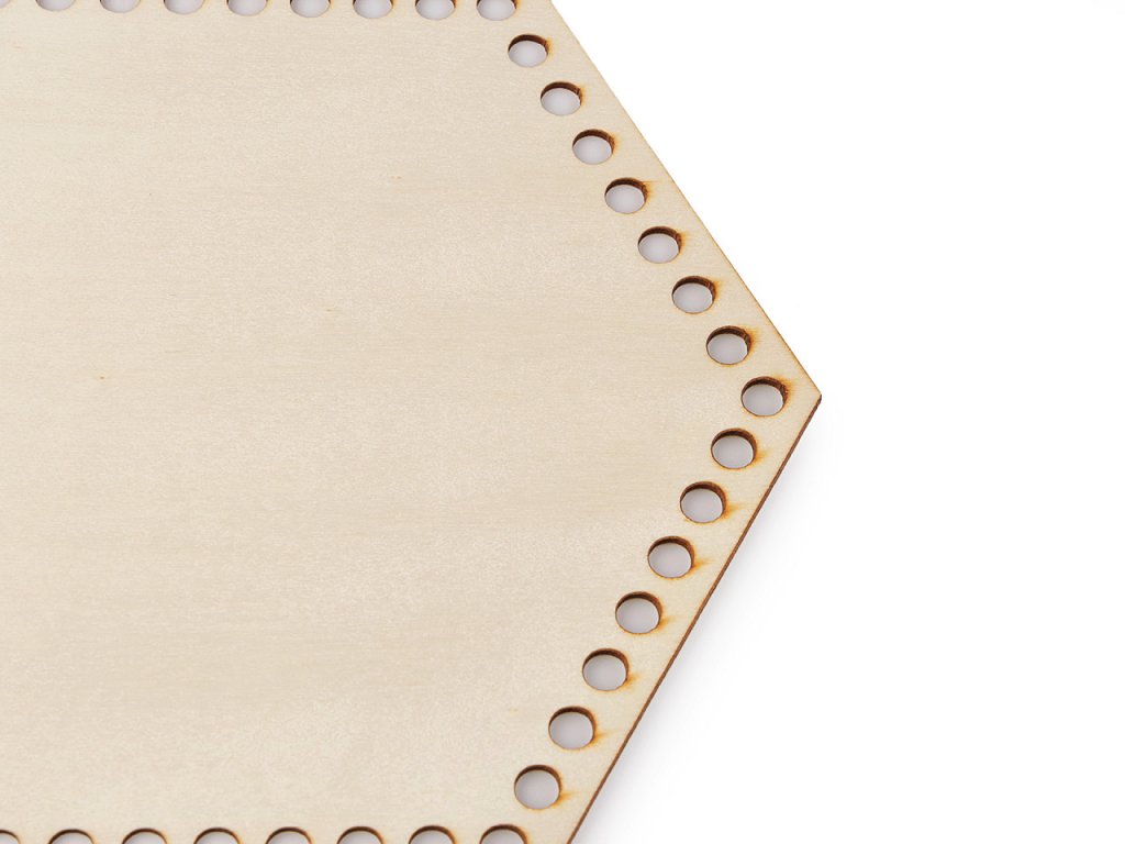 Dřevěný šestihran s velkými otvory využijete na výrobu bytových dekorací. Je přesně vyřezaný laserem.