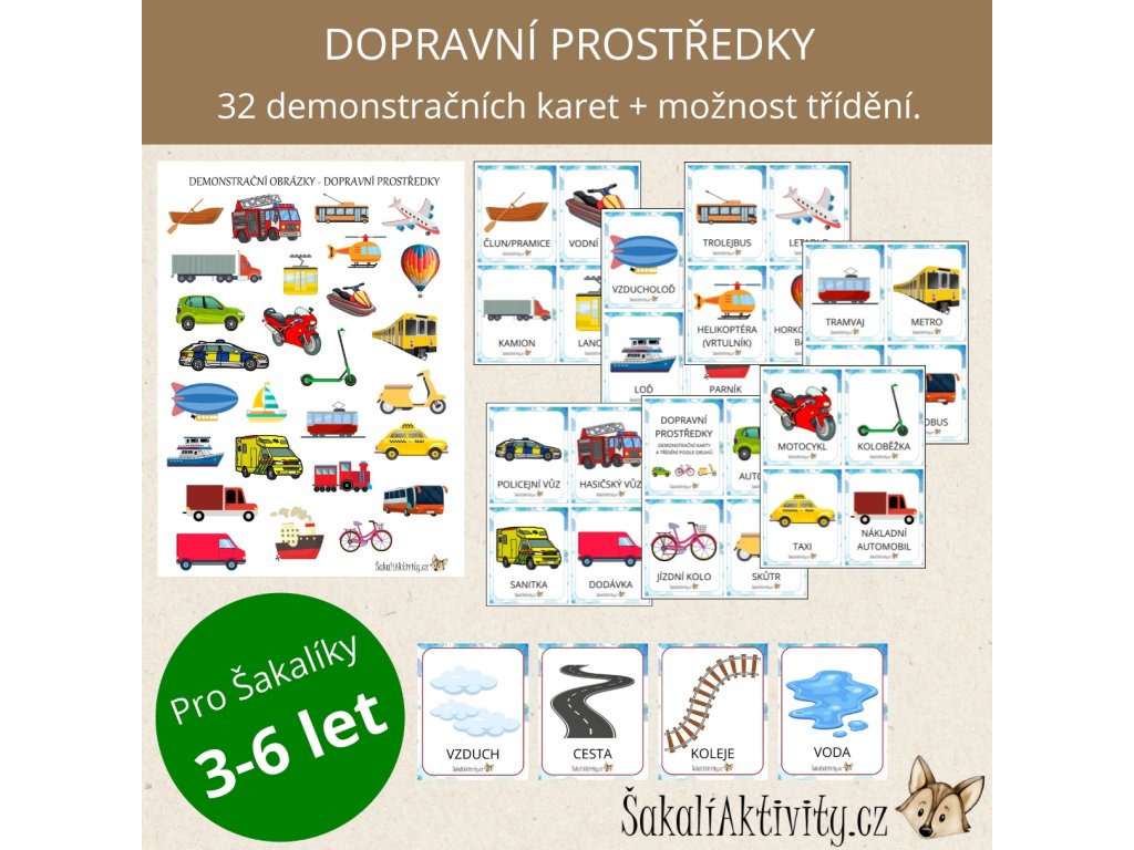 – 32 demonstračních karet velikosti A6 s ilustracemi různých dopravních prostředků