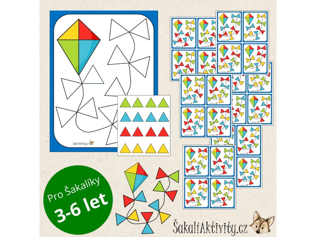 Tato hravá a vizuálně poutavá aktivita je skvělým způsobem, jak u dětí rozvíjet barevné vnímání, prostorovou představivost a jemnou motoriku. Dítě pracuje s obrázkem létajícího draka, kterému doplňuje barevné mašle na ocas podle předlohových karet.