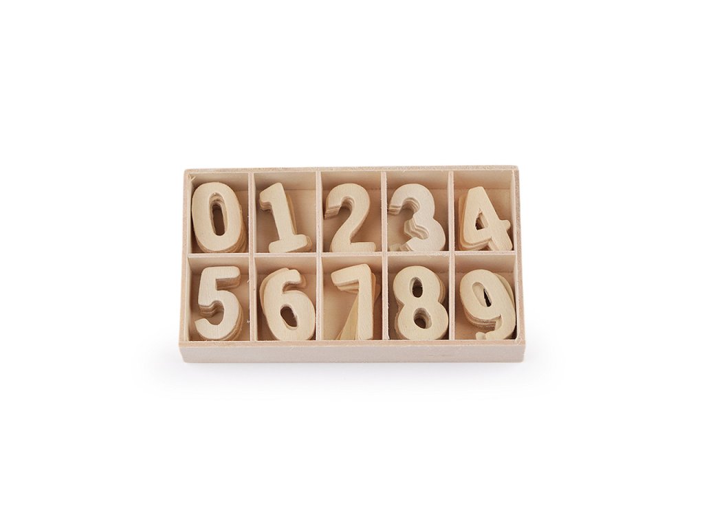 Dřevěná čísla v krabičce využijete k nalepení na přání, rámečky, diáře, pozvánky apod. Jsou také oblíbená maminkami prvňáčků, s úspěchem je používají jako zábavnou učební pomůcku. Z rubu nemají samolepku, k přichycení můžete použít oboustrannou lepicí pásku nebo lepidlo.