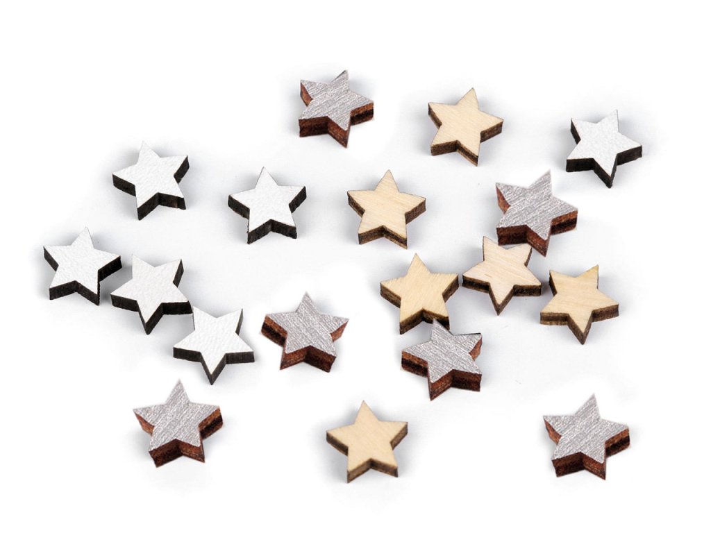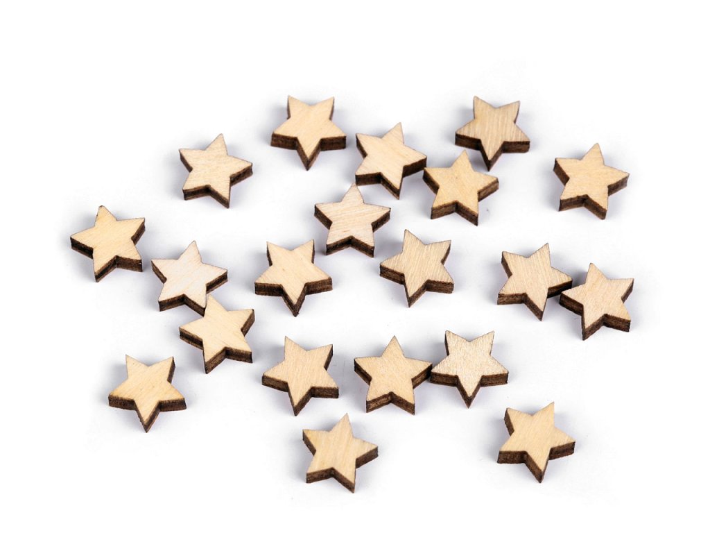 Dřevěné mini hvězdy využijete na aranžování, např. svátečního stolu, hodí se na přilepení na různé postavičky (anděly, skřítky, princezny apod).