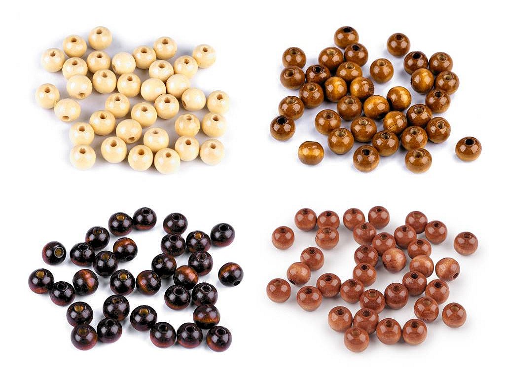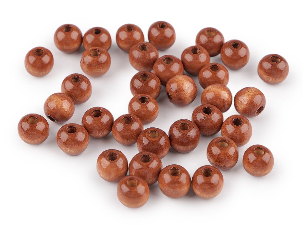 Kulaté dřevěné korálky se hodí na výrobu náhrdelníků a náramků.