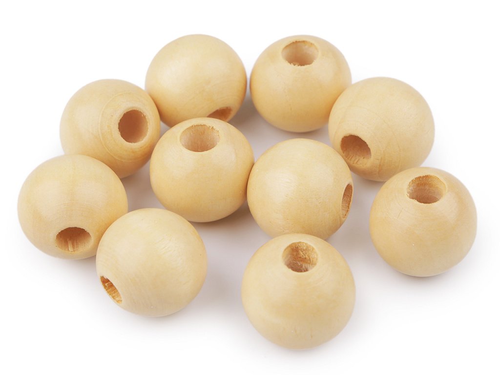 Velké dřevěné korálky využijete k výrobě uch na tašky či na tvorbu postaviček.
