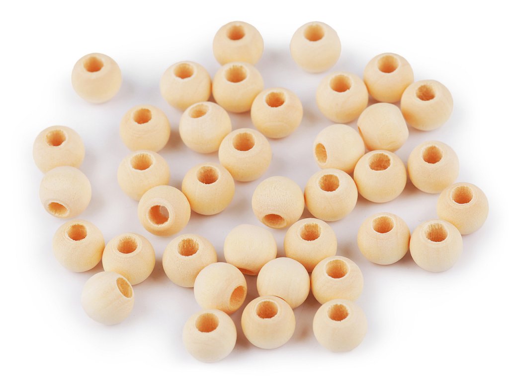 Dřevěné korálky se díky většímu průvleku výborně navlékají na šňůrky, provázky apod.