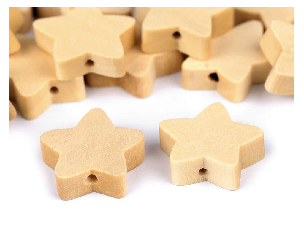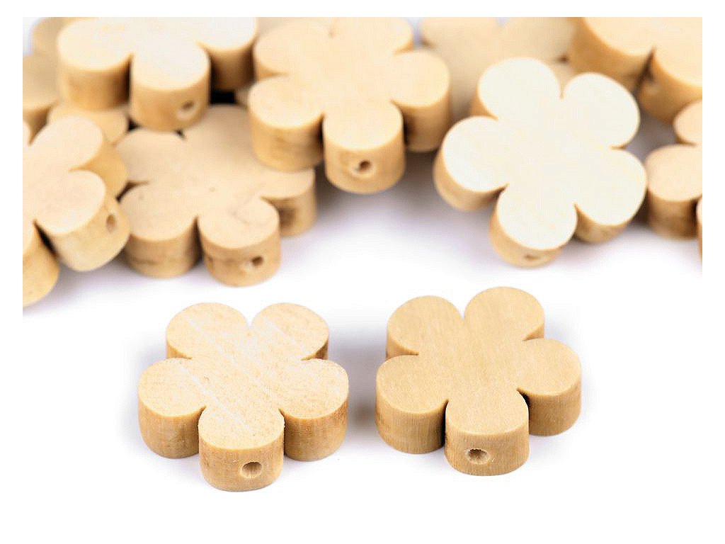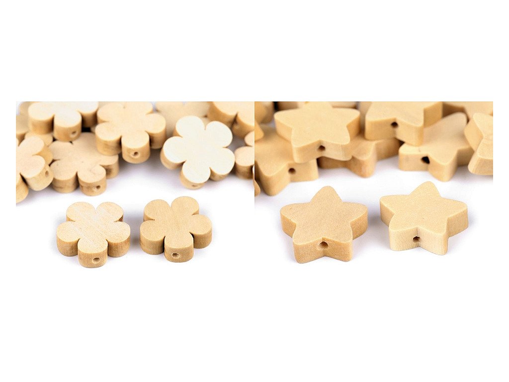 Dřevěné korálky nelakované Ø20 mm květ, hvězda - 20ks