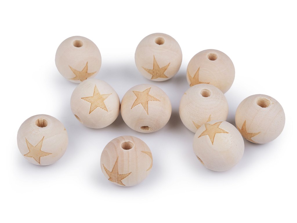 Dřevěné korálky nelakované hvězda, smajlík Ø20 mm