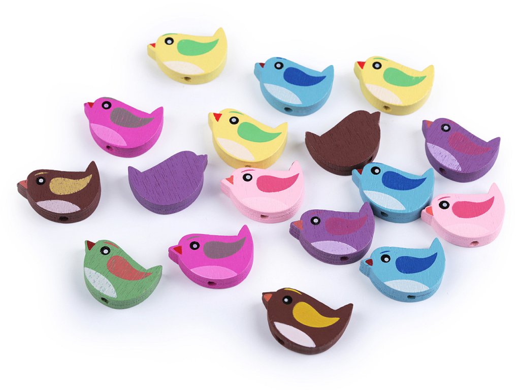 Mix barevných dřevěných korálků s roztomilým potiskem ptáčků potěší nejen korálkářky, ale i děti.