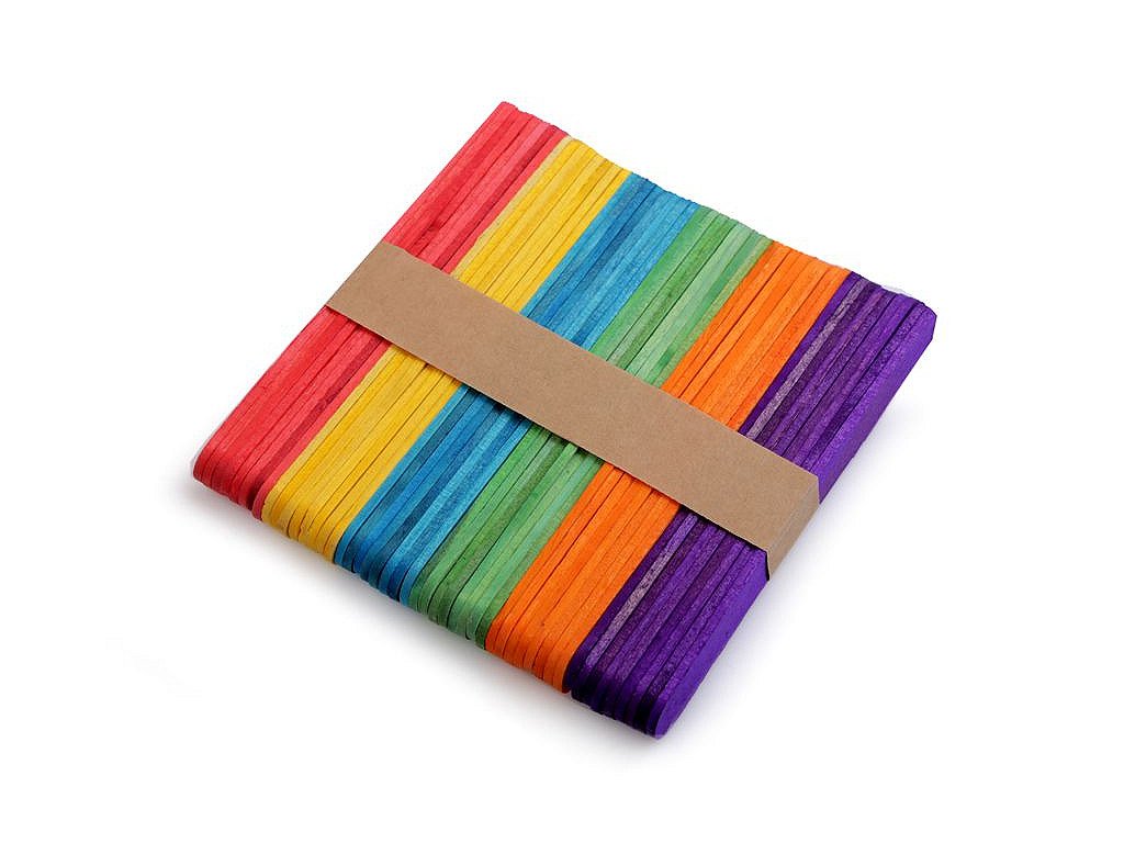 Dřevěné špachtle barevné 1x11,4 cm - 50ks