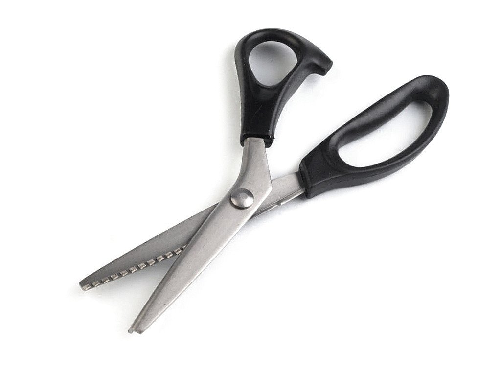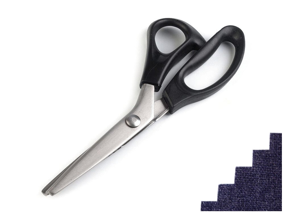 Entlovací nůžky mají po vnitřních stranách čepelí zoubky, kterými po ustřižení látky, papíru i čalounění vytvoříte zoubkovaný okraj.