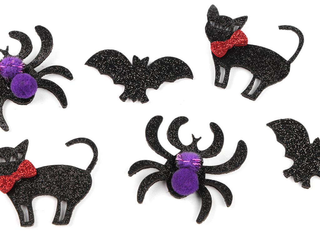 Filcová kočka, netopýr a pavouk s glitry, Halloween