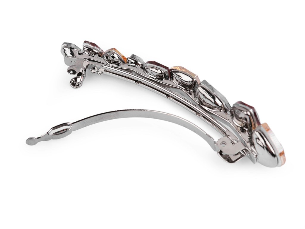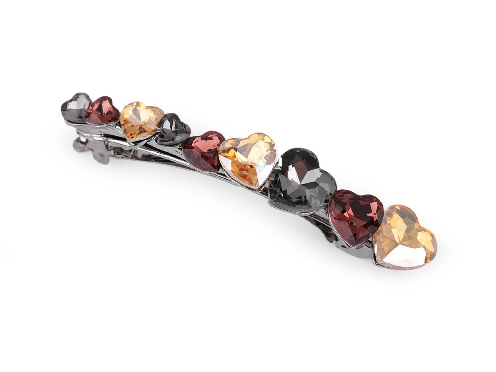 Francouzská spona zdobená akrylátovými broušenými srdci luxusně ozdobí váš účes. Má nádherný lesk, který přitahuje pozornost.